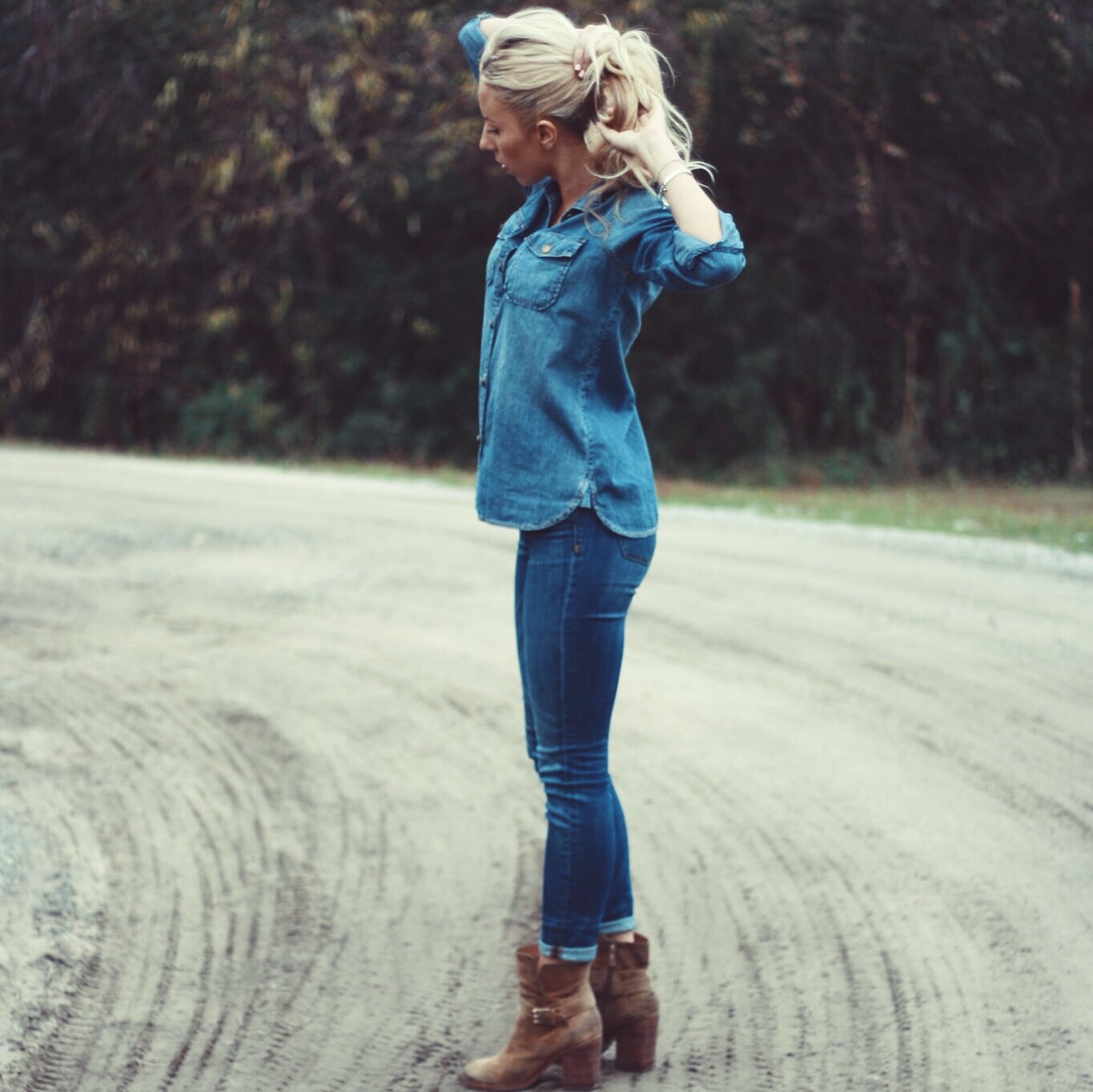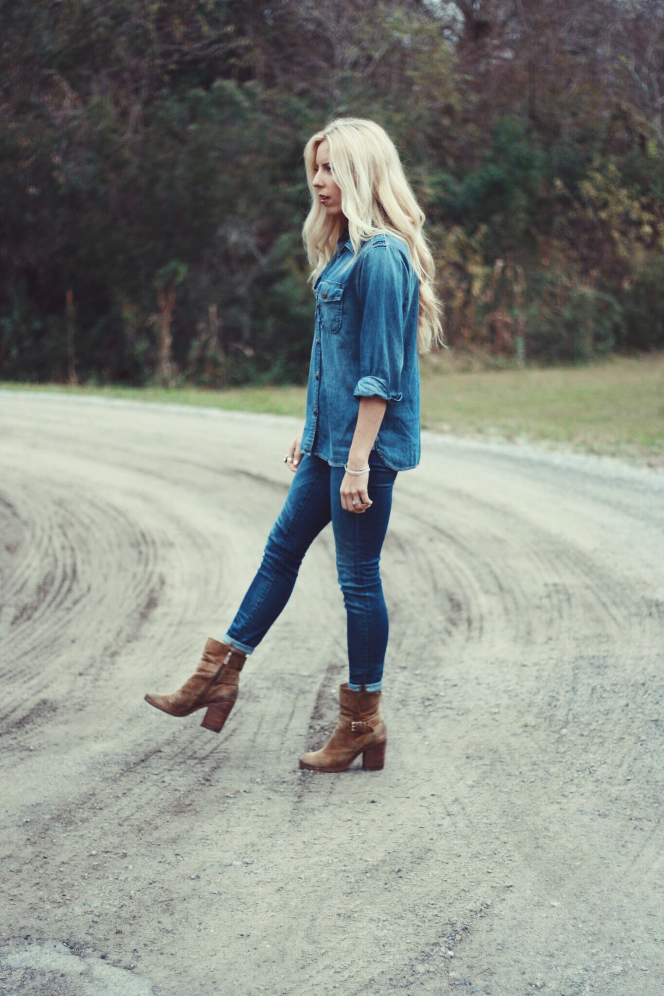 Kenzie’s Outfit: Shirt: (Current Elliot), Jeans: (Madewell), Shoes: (Sam Edelman Perry Strap Boots), Jewelry: (Stella and Dot)